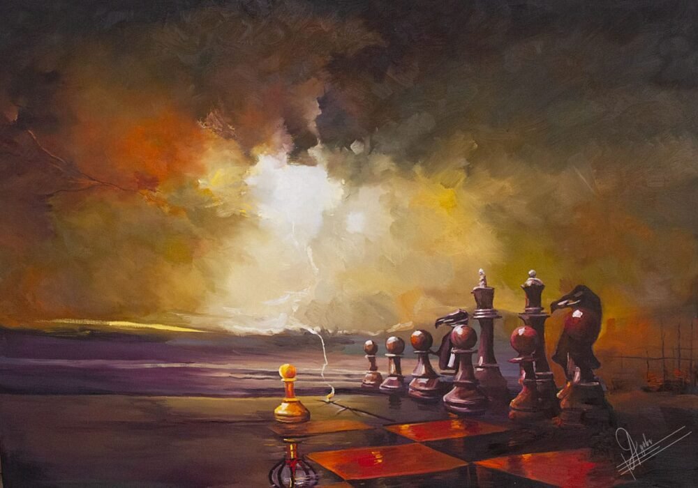 This painting illustrates the paradox of life that sees us all as pawns, and...