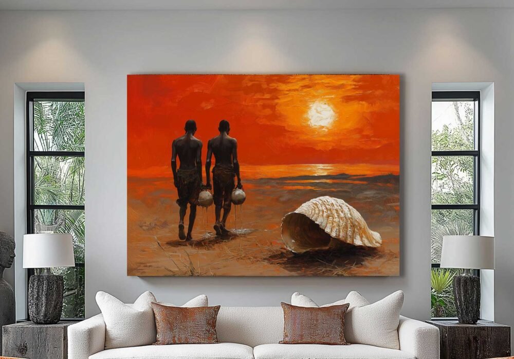 Setting Forth at Dawn, by Ernest Agoba, is a sunset landscape art that illustrates...